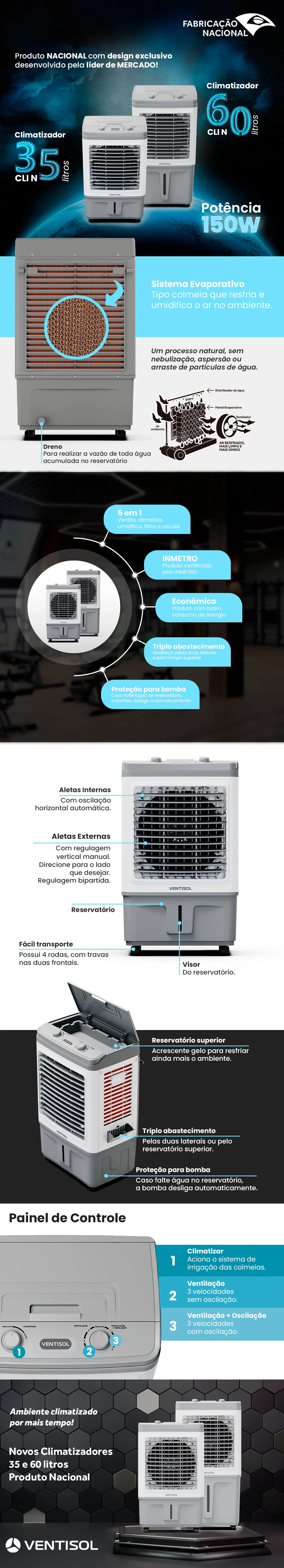 Climatizador 60L Ventisol 150w 220v Branco/Cinza CLIN60 PRO-02