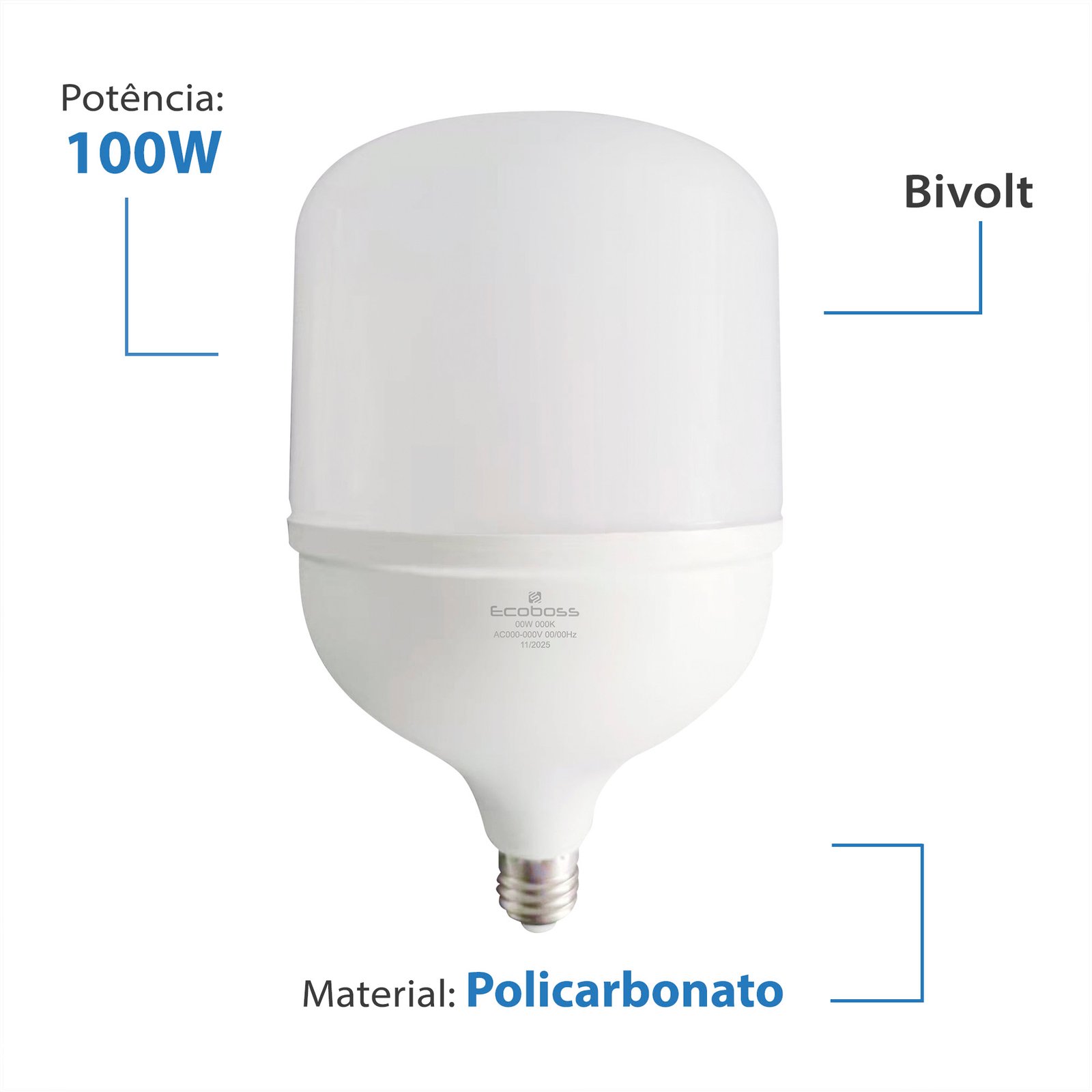 Lampada Alta Potencia Led Bulbo Ecoboss 100w
