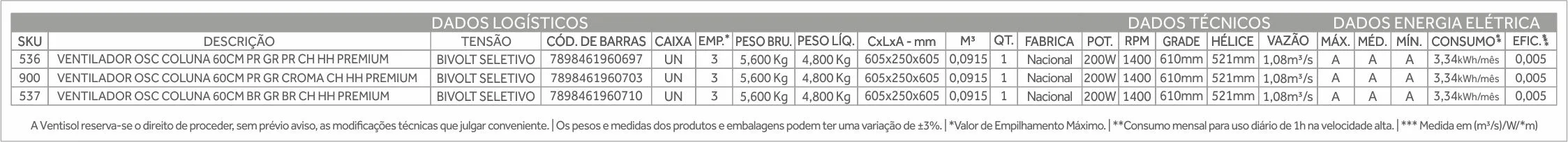 Ventilador de Coluna Ventisol 60cm 127V/220V