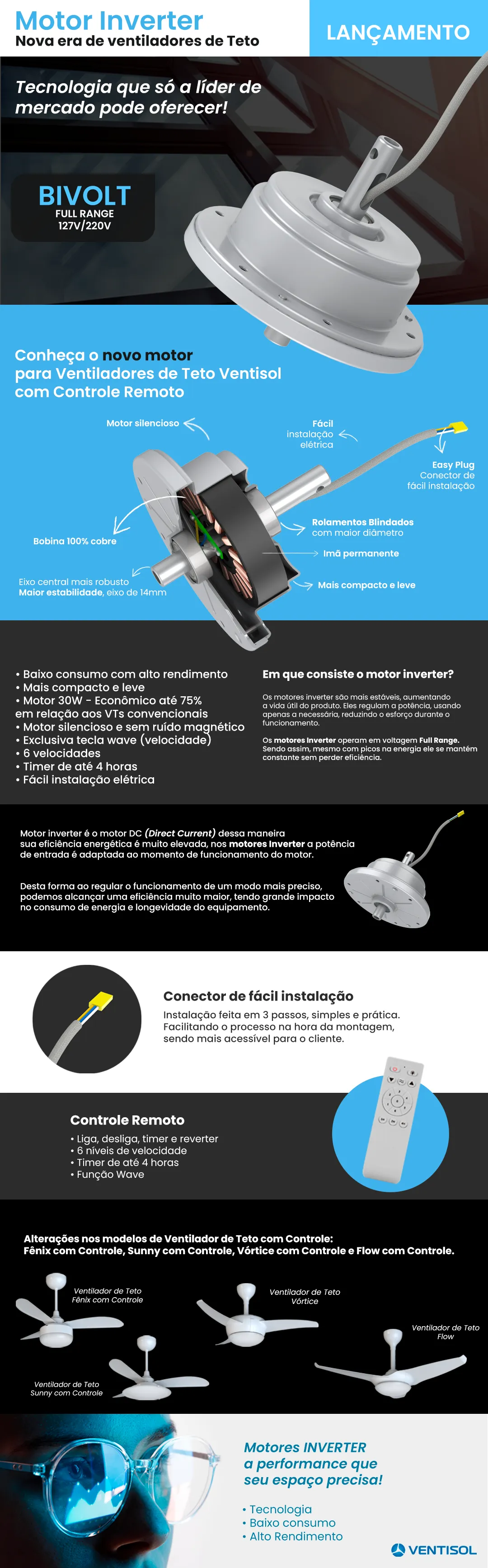 Ventilador de Teto Ventisol Fênix Inverter C/Cont. Branco Bivolt